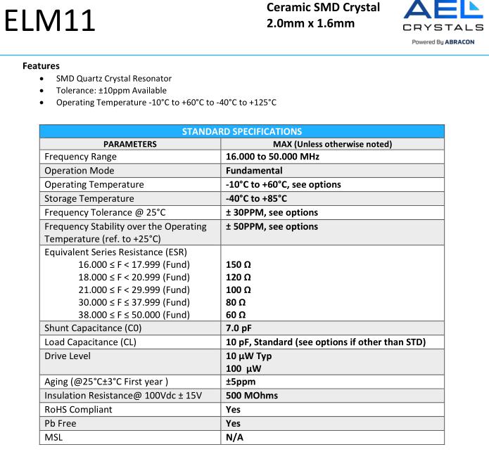 艾爾晶振,ELM11晶振,ELM11-16.000MHz-D7X-T晶振