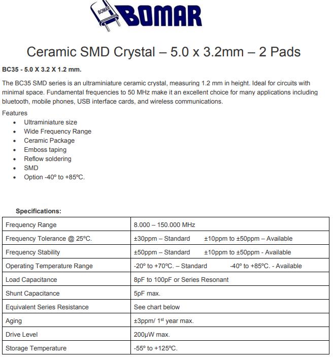 | Frequency Stability | ±50ppm – Standard ±10ppm to ±50ppm - Available |