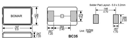 博馬爾晶振,BC35晶振,BC35EFD120-10.000000晶振,小型表面貼片晶振型,是標準的石英晶體振蕩器,適用于寬溫范圍的電子數碼產品,家電電器及MP3,MP4,播放器,單片機等領域.可對應8.000MHz以上的頻率,在電子數碼產品,以及家電相關電器領域里面發揮優良的電氣特性,滿足無鉛焊接的回流溫度曲線要求.Bomar 成立于 1963 年,是一家為商業和雙向無線電行業生產石英晶體的制造商。該業務的性質要求在寬頻率范圍內具有嚴格的容差和高穩定性晶體,以滿足嚴格的 FCC 規范。快速生產的需求對我們不斷增長的客戶群很重要。我們的許多客戶都是當地、州和聯邦警察和監視機構。Bomar 很快不僅成為該市場的領先供應商,而且因其產品質量、快速周轉時間和無與倫比的客戶服務而獲得一致認可。