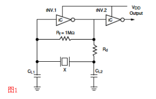 使用逆變器門將數字IC配置成振蕩電路變得越來越普遍.下頁的圖1顯示了帶CMOS反相器的基本振蕩電路的配置.INV.1用作振蕩電路的反相放大器.INV.2用作波形整形器,并且還用作輸出的緩沖器.反饋電阻Rf在逆變器周圍提供負反饋,以便在通電時振蕩開始.如果Rf的值太大而輸入逆變器的絕緣電阻太低,則由于環路增益的損失,振蕩將停止.而且,如果Rf太大,則可以將來自其他電路的噪聲引入振蕩電路.顯然,如果1M的Rf通常與石英晶體諧振器一起使用.阻尼電阻Rd具有以下功能,但有時省略.它使逆變器和反饋電路之間的耦合松動,從而減小逆變器輸出側的負載.此外,反饋電路的相位穩定.它還提供了一種降低較高頻率增益的方法,從而防止了寄生振蕩的可能性.