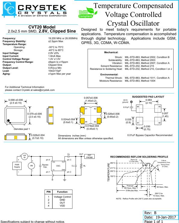 Crystek晶振,CVT20晶振,TCXO溫補晶振