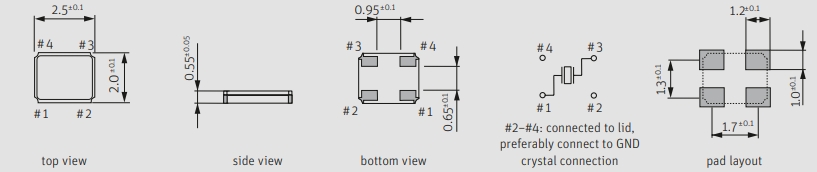 | Size/Dimension尺寸 | 2520貼片晶振 | 安裝方式 Installation: | Surfacemount |