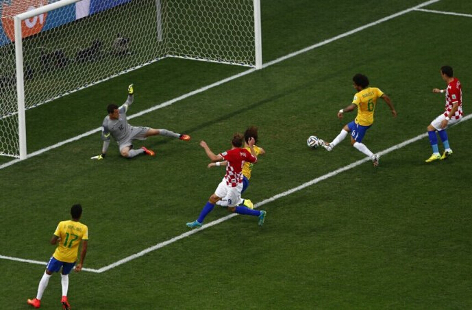 巴西世界杯揭幕戰(zhàn)打的那個激烈啊,東道主巴西隊(duì)攻入4球,以3:1戰(zhàn)勝克羅地亞隊(duì),你不會忘了這場巴西人的獨(dú)角戲,也不會忘了馬塞洛的這記烏龍球。
