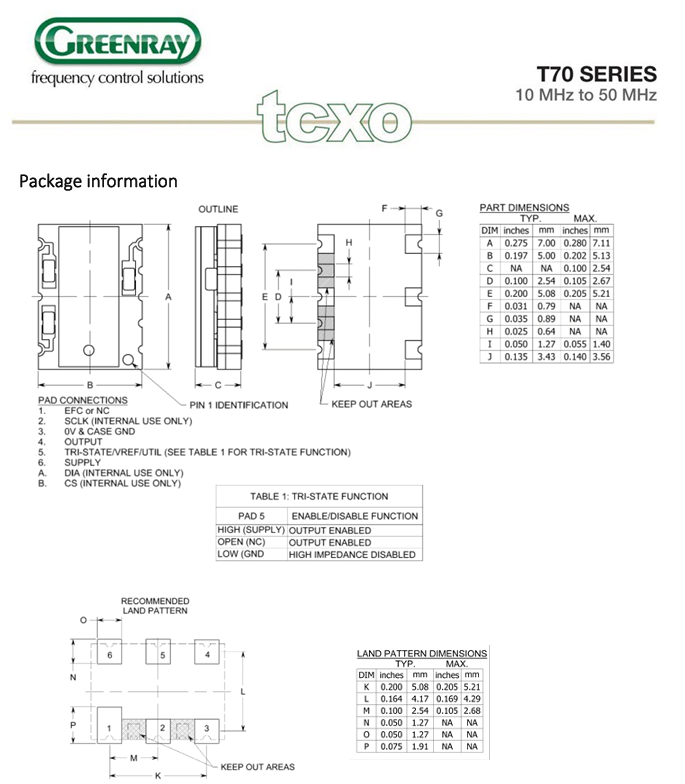 更多>>Greenray美國格林雷T70系列TCXO晶振移動應用的精準之芯