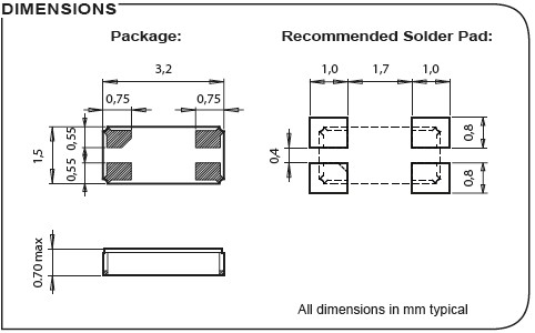 (2)微晶晶振,貼片晶振,OM-7604-C7晶振,4腳石英晶體諧振器 在設計時請參考相應的推薦封裝。