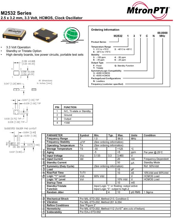MtronPTI晶振在1965年成立,主要以生產石英晶振,陶瓷晶振,聲表面濾波器,石英晶體振蕩器為主.MtronPTI Crystalup擁有超過150000平方英尺的研發制造廠房,10多處支持站點.麥特倫皮晶振,M251X晶振,M251064TCN0.032768MHz晶振.