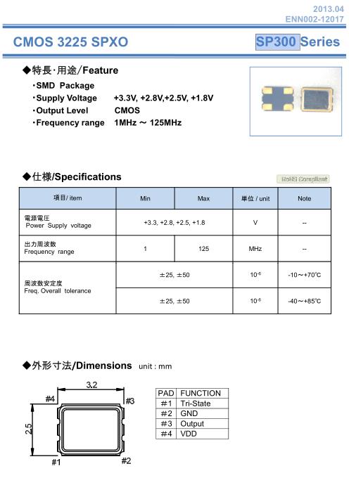 NAKA晶振,SP300晶振,SPXO晶振,小型SMD有源晶振,從最初超大體積到現(xiàn)在的7050mm,6035mm,5032mm,3225mm,2520mm體積,有著翻天覆地的改變,體積的變小也使產(chǎn)品帶來了更高的穩(wěn)定性能,接縫密封石英晶體振蕩器,精度高,覆蓋頻率范圍寬的特點(diǎn),SMD高速自動(dòng)安裝和高溫回流焊設(shè)計(jì),Optionable待機(jī)輸出三態(tài)輸出功能,電源電壓范圍:1.8V~5V,高穩(wěn)定性,低抖動(dòng),低功耗,主要應(yīng)用領(lǐng)域:無(wú)線通訊,高端智能手機(jī),平板筆記本W(wǎng)LAN,藍(lán)牙,數(shù)碼相機(jī),DSL和其他IT產(chǎn)品的晶振應(yīng)用,三態(tài)功能,PC和LCDM等高端數(shù)碼領(lǐng)域,符合RoHS/無(wú)鉛.