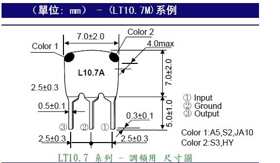 • 調頻接收機用 LT10.7M 輸入/輸出阻抗 (Ω):330Ω.