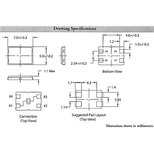 | Aging @ 25°C 1st year (Max) | ±3 ppm, ±5 ppm/year |