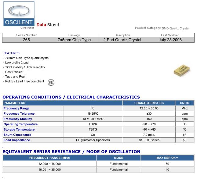 奧斯康利晶振,265晶振,265-12.0M-20-S-TR晶振