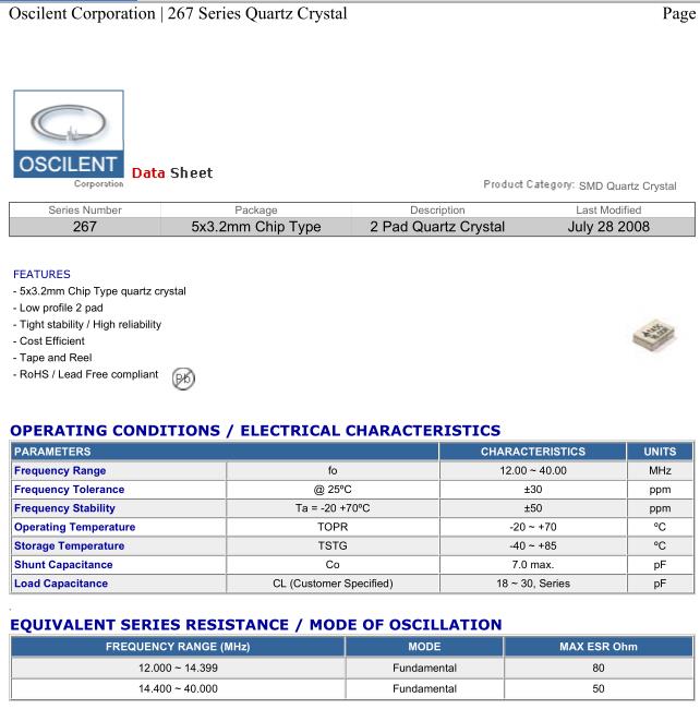 Oscilent晶振,267晶振,267-12.0M-20-S-TR晶振