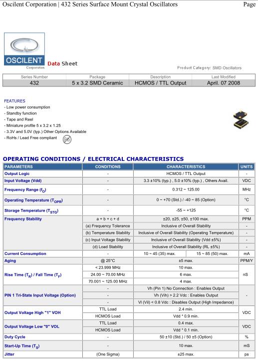 Oscilent晶振,432晶振,432-12.0M-3EN-T-TS晶振