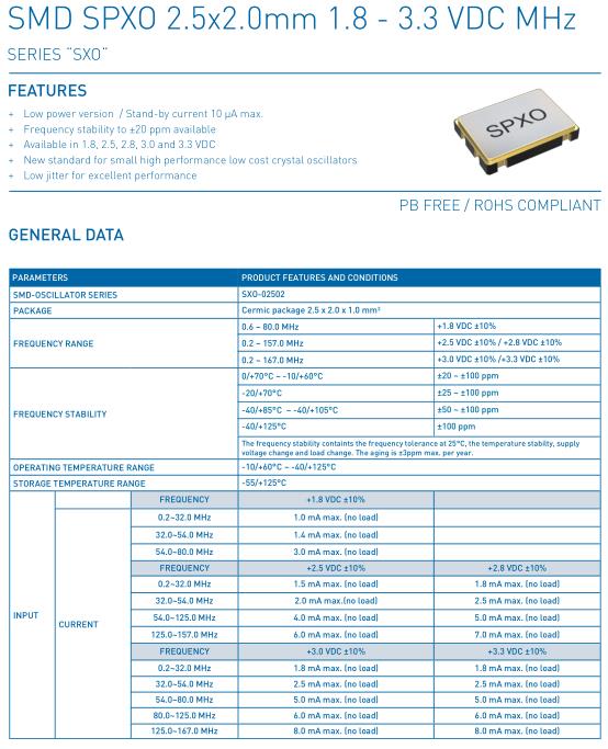 - 產(chǎn)品描述:彼得曼晶振,SXO-02502晶振,SXO18-02502-SE20M-27.000MHz-T晶振,有源晶振,是指晶體本身起振需要外部電壓供應(yīng),起振后可直接驅(qū)動CMOS集成電路,產(chǎn)品本身已實現(xiàn)與薄型IC(TSSOP封裝,TVSOP封裝)同樣的1mm厚度,斷開時的消費電...