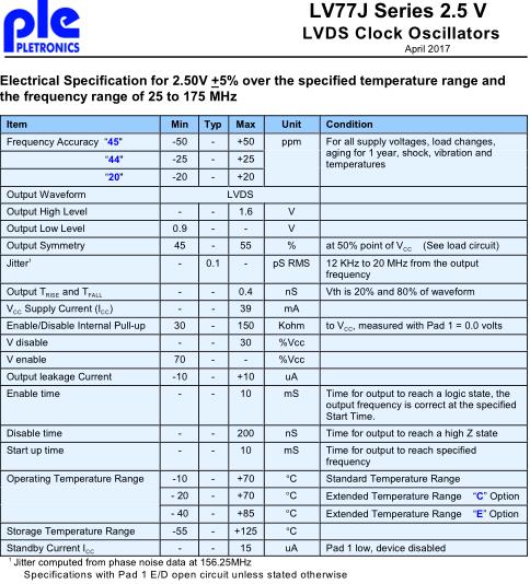 Pletronics晶振,LV77J晶振,LVDS晶振,PLETRONICS晶振公司成立于1979年,有30多年的工程和制造經驗,一流質量的聲譽——一流的oem和CEMs供應商的首選供應商。