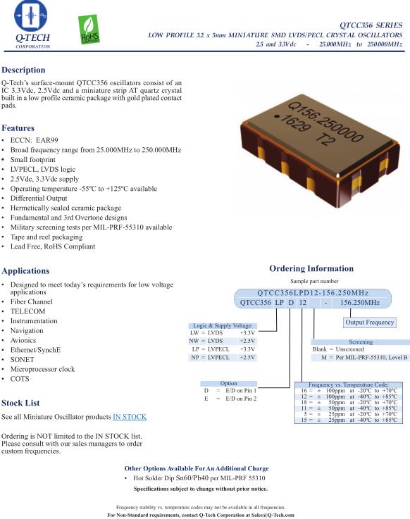 Q-Tech晶振,QTCC356LW晶振,QTCC356LPD12-26.000MHz晶振
