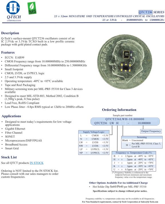 Q-Tech晶振,QTCT236晶振,QTCT236LWH-10.000000晶振
