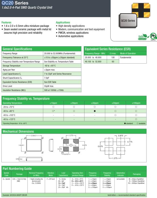 | General Specifications-QANTEK晶振 | QC20晶振 |