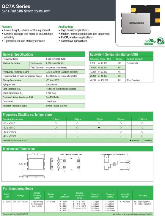 | General Specifications-QANTEK晶振 | QC7A晶振 | |