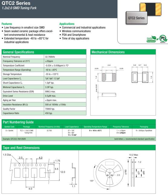 | General Specifications-QANTEK晶振 | QTC2晶振 |