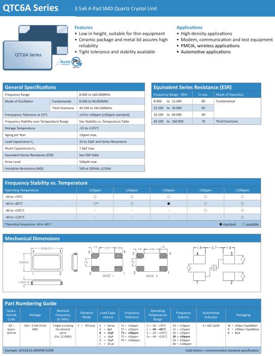 Quarztechnik晶振,QTC6A晶振,QTC6A12.0000FBT3I30R晶振
