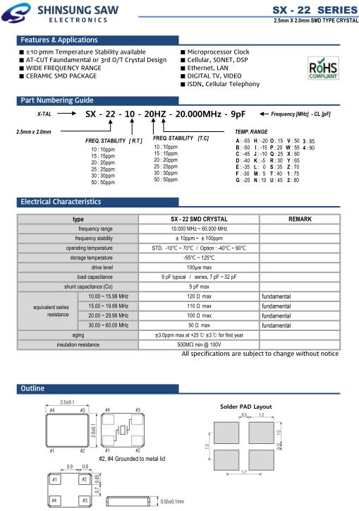 SHINSUNG晶振,SX-22晶振,SX-22-10-20HZ-20.000MHz-9pF晶振