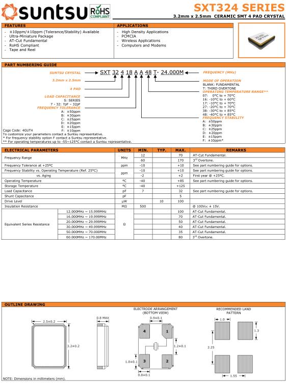 Suntsu晶振,SXT324晶振,SXT32418AA48T- 24.000M晶振