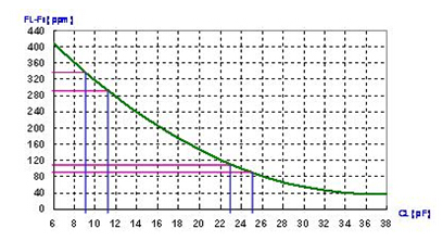 石英晶體共振子應用在并聯振蕩線路上, 振蕩頻率與負載電容CL有很大的關系. 這在前面的公式(3)就可以看到. 圖中是以并聯振蕩線路上FL頻率對負載電容CL的變化曲線示意圖.