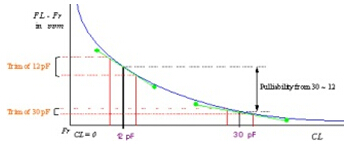 該曲線代表電容變化與頻率變化(頻率pullability)變化的變化: