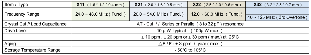 - 尺寸:1.6 * 1.2 * 0.4 mm 2.0 * 1.6 * 0.5 mm 2.5 * 2.0 * 0.6 mm 3.2 * 2.5 * 0.7 mm